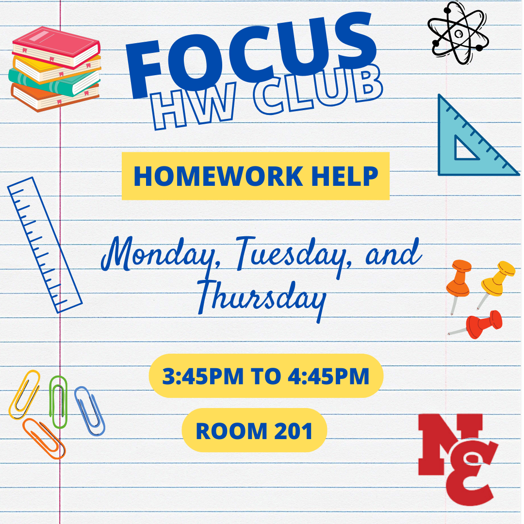 Finish Strong with FOCUS Homework Club 💪📚As we head into the next few weeks of the term, FOCUS Homework Club is a great after-school option for 9th grade students who need time and support to catch up on missing work, complete assignments, and finish strong. Students receive tutoring, encouragement, and a quiet, supervised space to work.